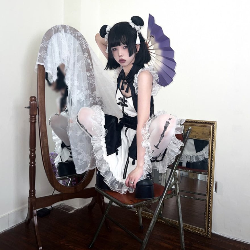 サブカル 服 地雷系 通販 ワンピース リストバンド ベルト 付け袖 5点 オールインワン パンク バンギャ ボーカル衣装 コスプレ イベント ステージ衣装 lolita