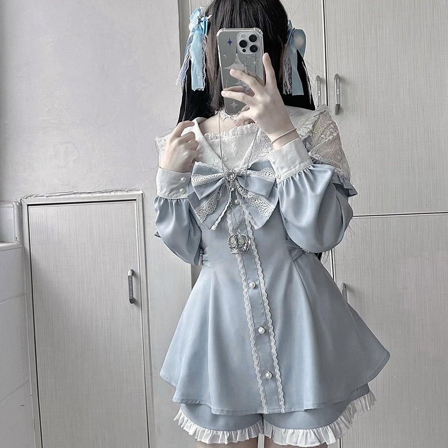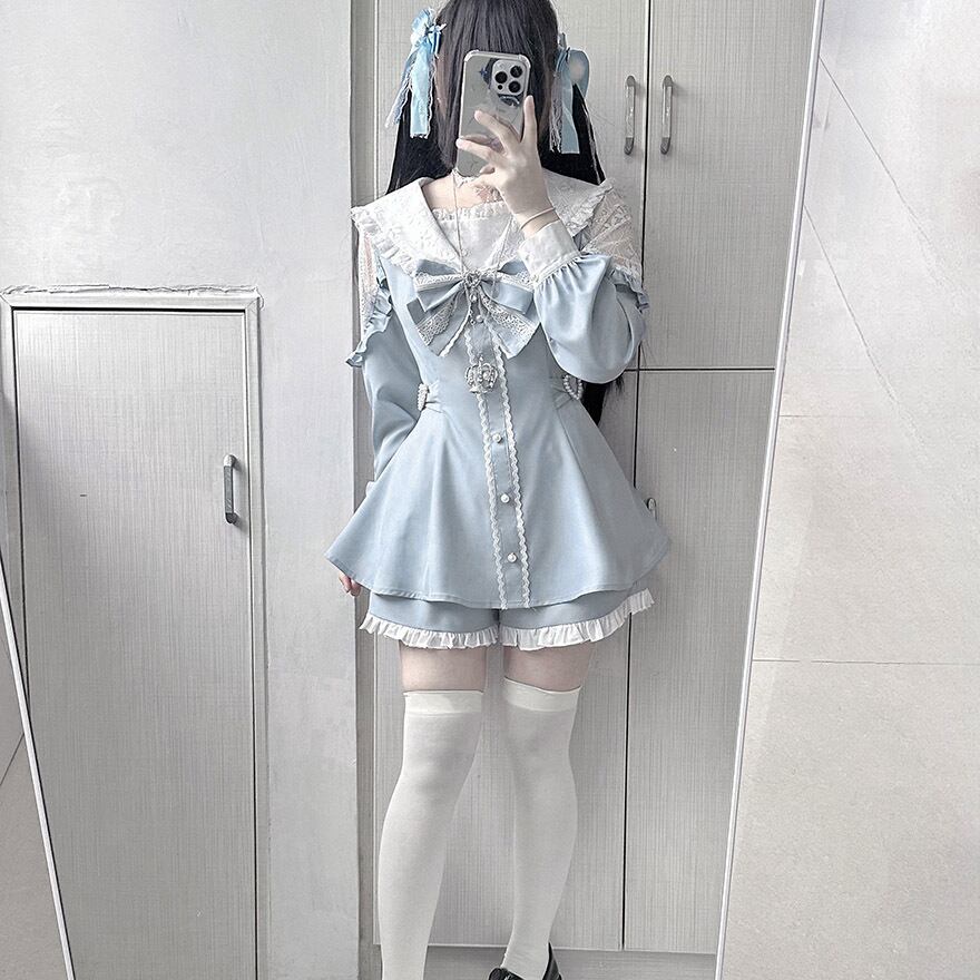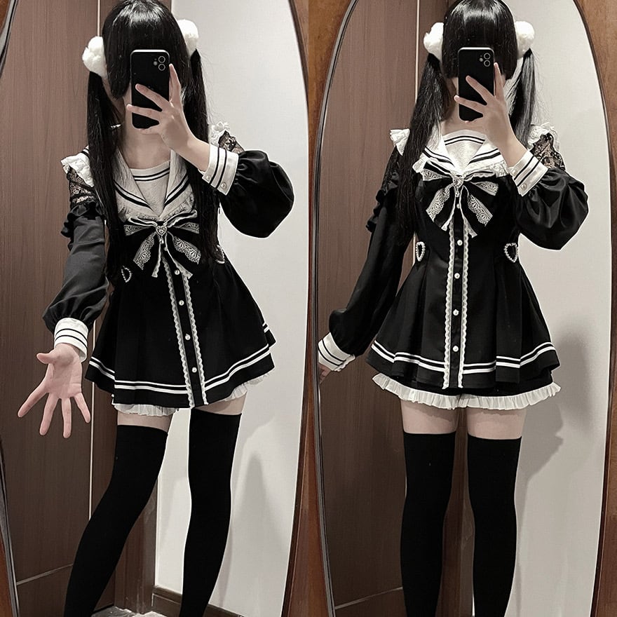 サブカル 服 地雷系 通販 ワンピース 長袖 セーラー襟 リボン 天使界隈 レース ベビードール lolita