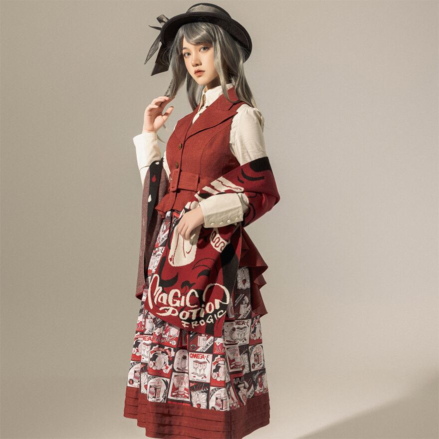 サブカル 服 地雷系 通販 クラロリ ベスト 羽織り 重ね着 フィッシュテール バックフリル クラシカル 上品 エレガント 量産型