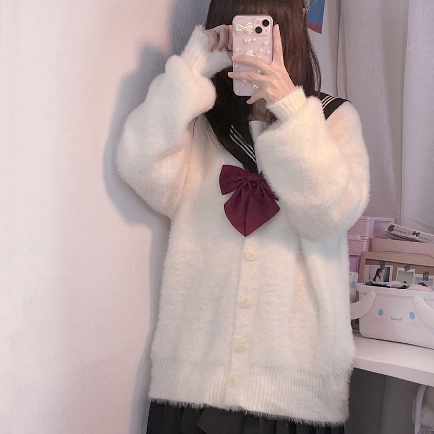 サブカル 服 地雷系 通販 カーディガン ふわふわニット 羽織り JKロリータ 学園風 カジュアル 普段着使い ベビードール