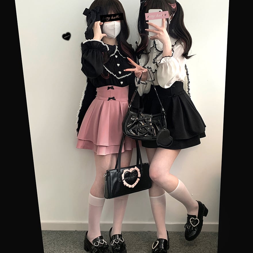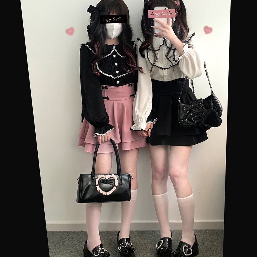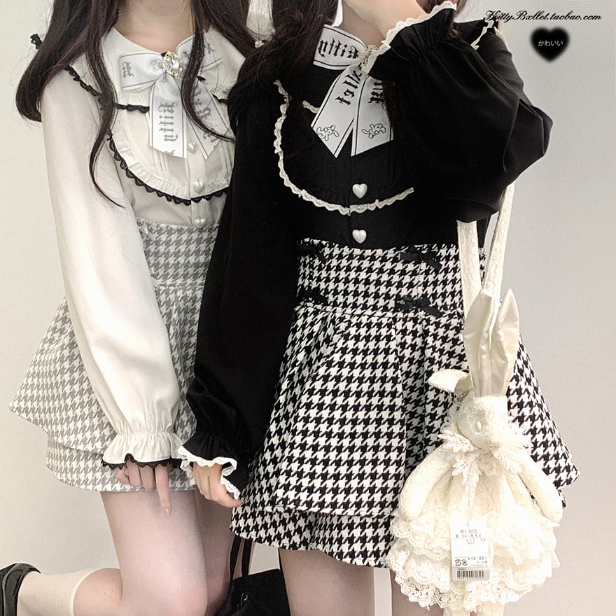 サブカル 服 地雷系 通販 ブランド KittyBxllet 長袖シャツ うさぎ レース ブラウス 量産型 うさ耳 双子コーデ 小悪魔 ベビードール