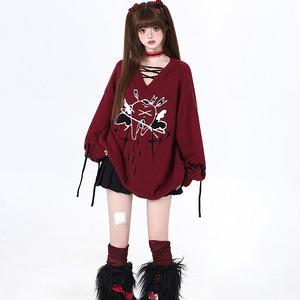 サブカル 服 地雷系 通販 ロリパン セーター ニット 長袖 プルオーバー Vネック CRAZYGIRLシリーズ 暗黒系