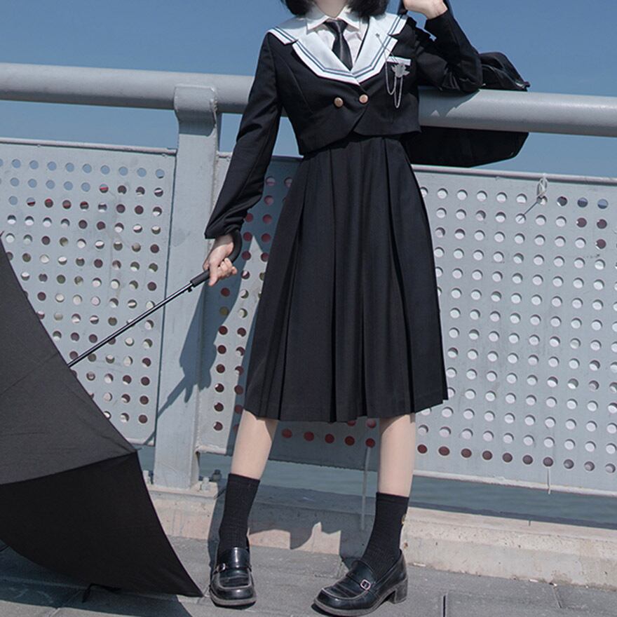 サブカル 服 地雷系 通販 ファッション ミリロリ ストラップ付きスカート ジャンパースカート ジャンスカ 学園風 セーラー風 ダークゴシック