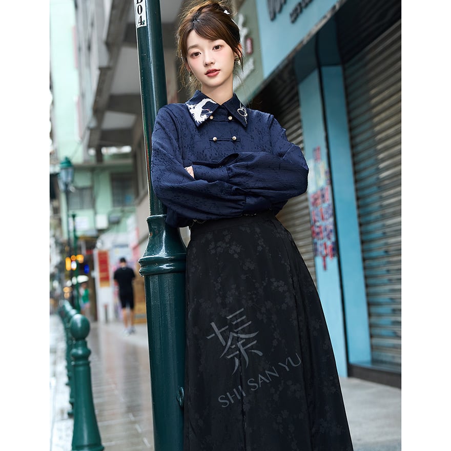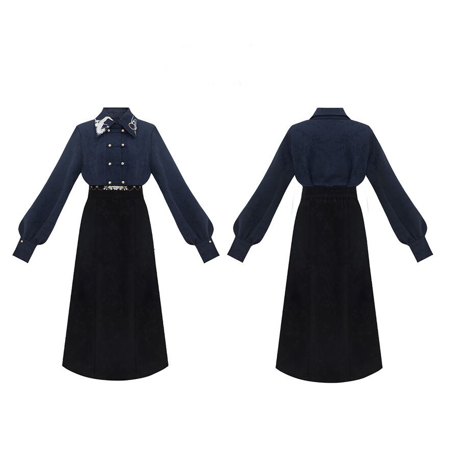 サブカル 服 地雷系 通販 チャイナ風 中華系 セットアップ ツーピース シャツ スカート 刺繍 レトロ エレガント 普段着使い