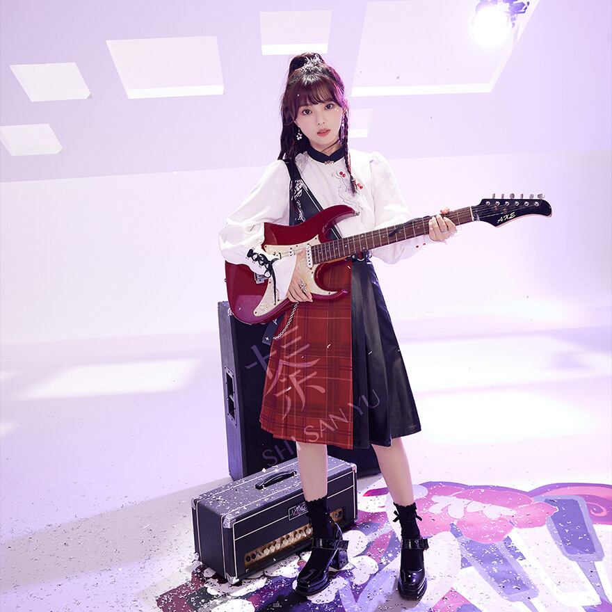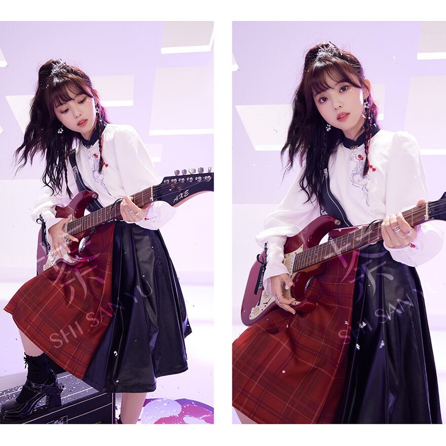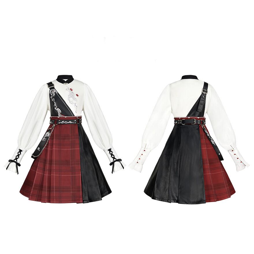 サブカル 服 地雷系 通販 チャイナ風 中華系 ロリータ スカート ワンショルダー チェック柄 バイカラー ステージ衣装 バンドギャル レトロ