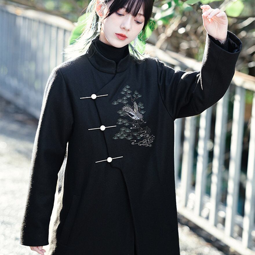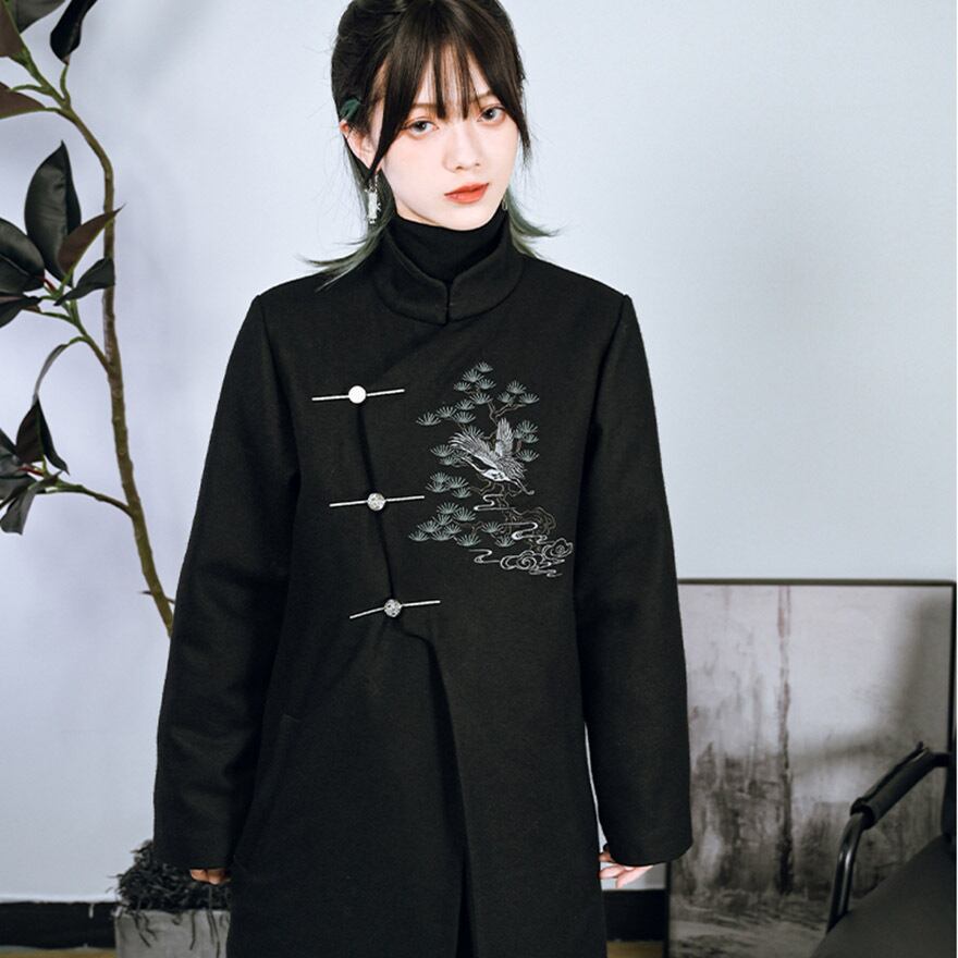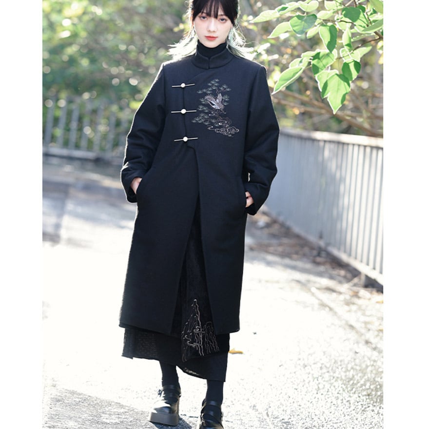 サブカル 服 地雷系 通販 チャイナ風 中華系 チャイナ風服 古怪舎 ロングコート ウール アウター 羽織り 刺繍 中華風 スタンドカラー 大人かわいい エレガント ダークファッション