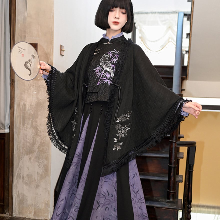 サブカル 服 地雷系 通販 チャイナ風 中華系 チャイナ風服 古怪舎 ショール ポンチョ 羽織り アウター マント 刺繍 大人かわいい エレガント ダークファッション