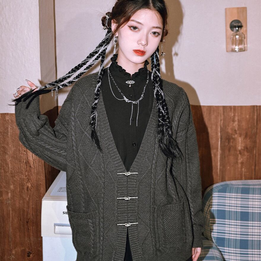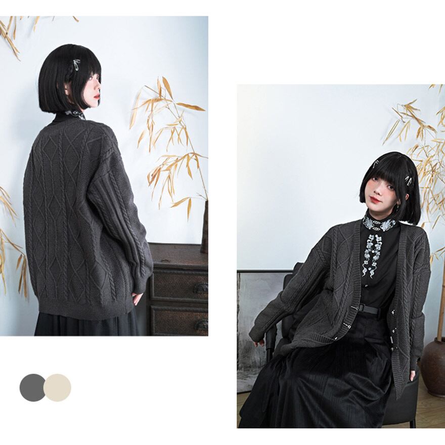 サブカル 服 地雷系 通販 チャイナ風 中華系 チャイナ風服 古怪舎 カーディガン ニット セーター バックル 羽織り Vネック 大人かわいい エレガント ダークファッション
