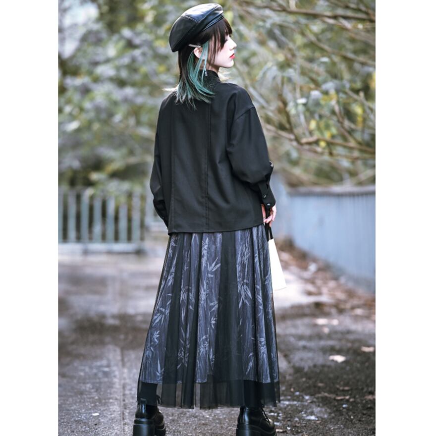 サブカル 服 地雷系 通販 チャイナ風 中華系 チャイナ風服 古怪舎 長袖シャツ ブラウス 刺繍 鳥 笹 バンブー 大人かわいい エレガント ダークファッション