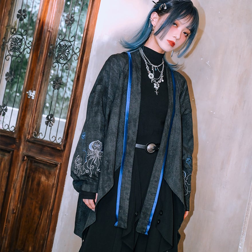 サブカル 服 地雷系 通販 チャイナ風 中華系 チャイナ風服 古怪舎 カーディガン 羽織り 上着 アウター イレギュラーヘム 刺繍 大人かわいい エレガント ダークファッション
