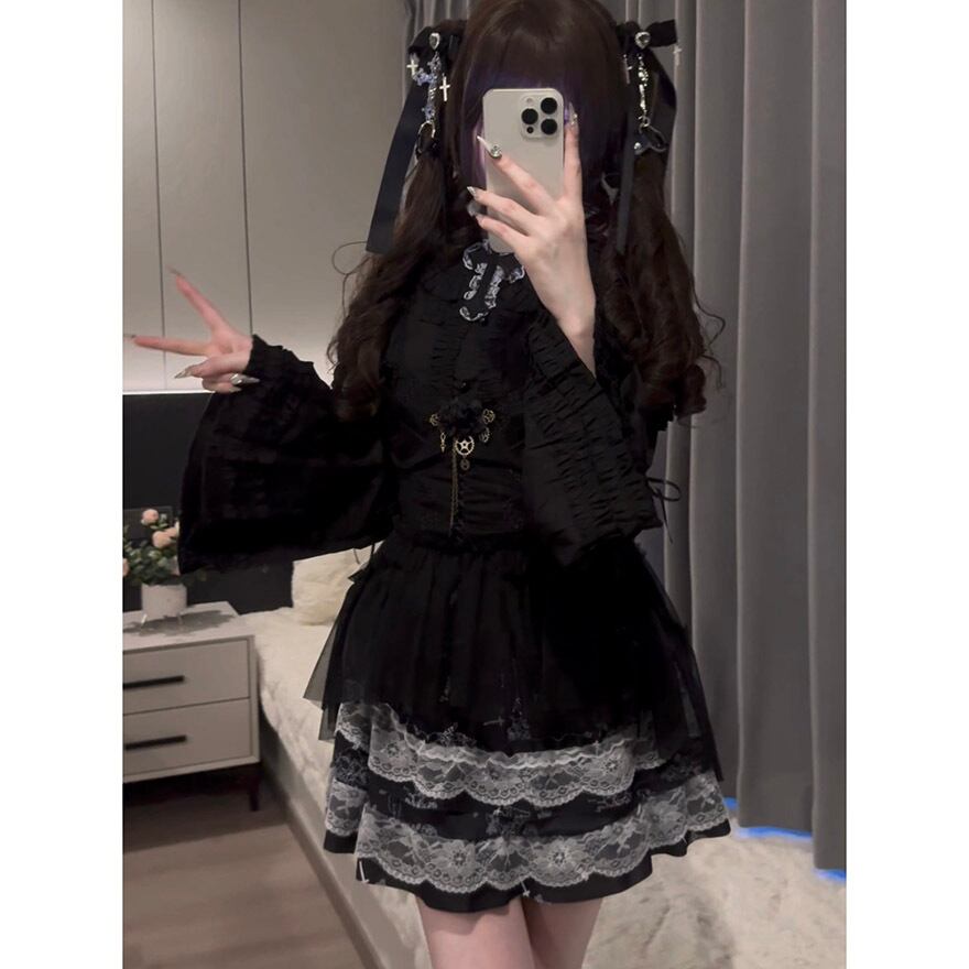 サブカル 服 地雷系 通販 系 ファッションセットアップ トップス ミニスカート レース ゴスロリ 闇かわいい ダークファッション