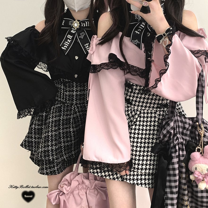 サブカル 服 地雷系 通販 系 ファッションミニスカ フレアスカート 千鳥格子 リボン チェック柄 量産型 ガーリー ロマンティック lolita