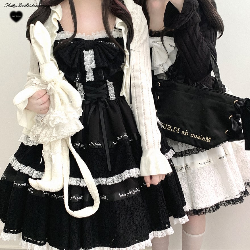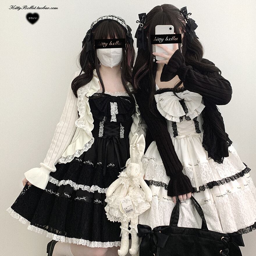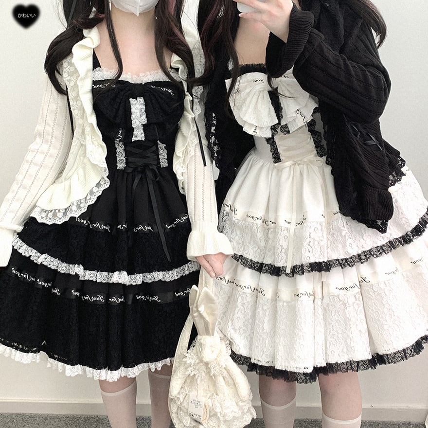 サブカル 服 地雷系 通販 系 ファッションジャンパースカート ワンピース リボン レース 秋冬服 量産型 ガーリー ロマンティック lolita