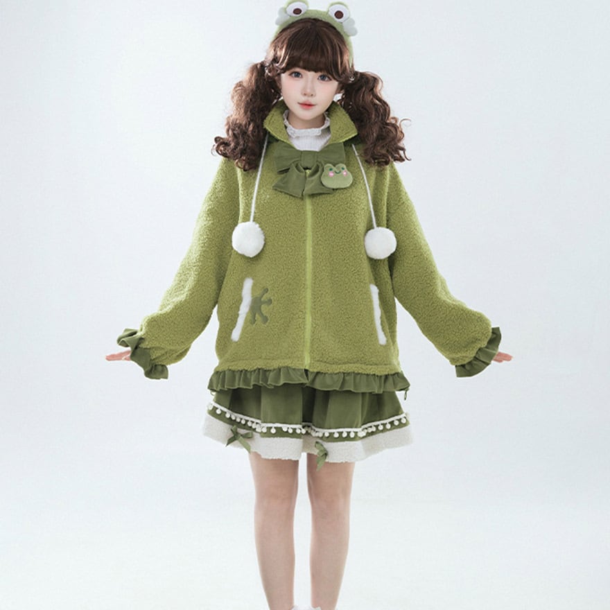 サブカル 服 地雷系 通販 系 ファッション PUJI オリジナル ミニスカート ボア ぽんぽん モール リボン 秋冬服 量産型 ガーリー
