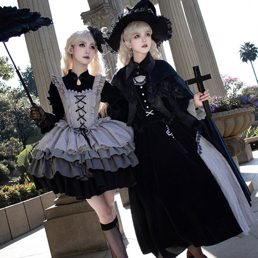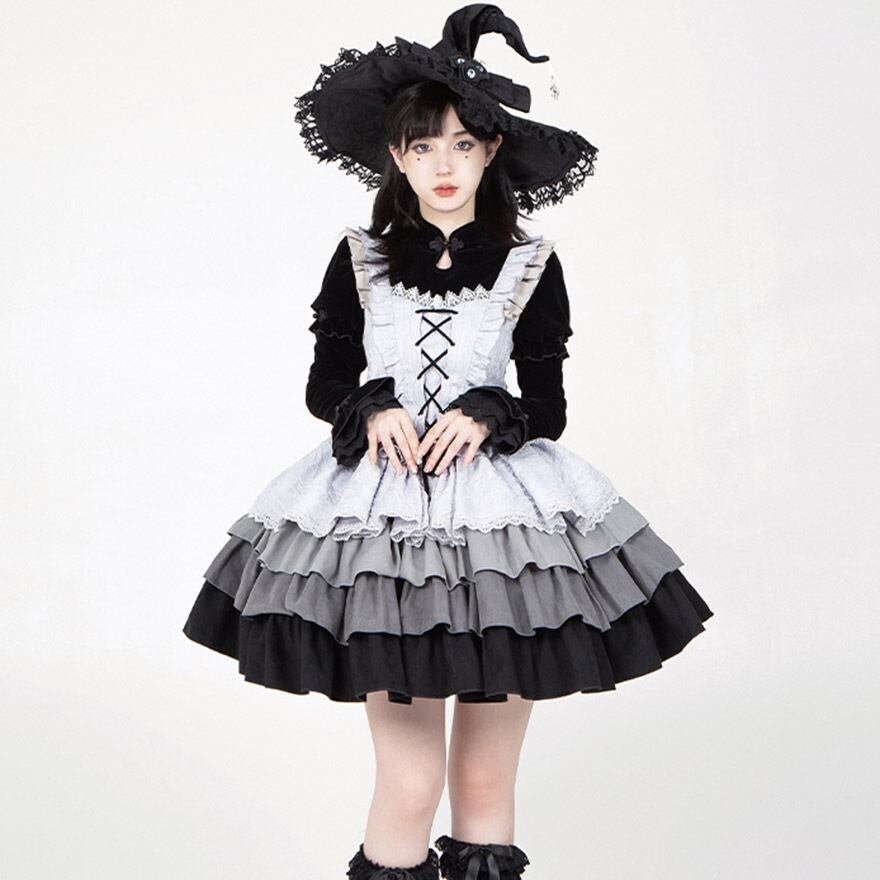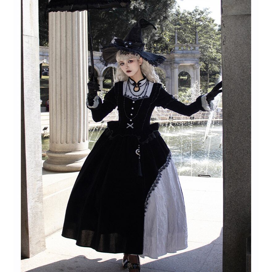 サブカル 服 地雷系 通販 系 ファッション ゴスロリ PUJI オリジナル 帽子 三角帽 ハット 魔法使い ダークファッション 秋冬服 イベント 舞台衣装