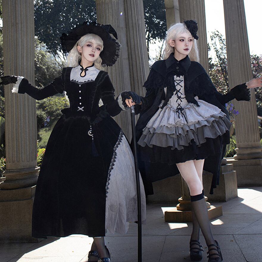 サブカル 服 地雷系 通販 系 ファッション ゴスロリ PUJI オリジナル ミニワンピース 長袖 ケーキスカート Aライン ヘルシー 秋冬服