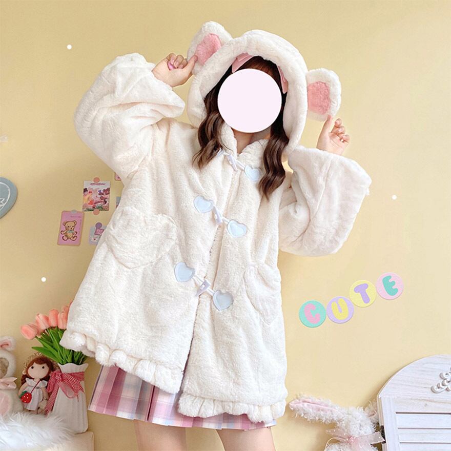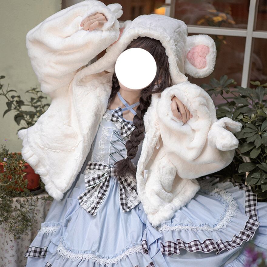 サブカル 服 地雷系 通販 ゆめかわファッション コート アウター ロング丈 ふわふわ 耳付き 秋冬服 量産型 ガーリー