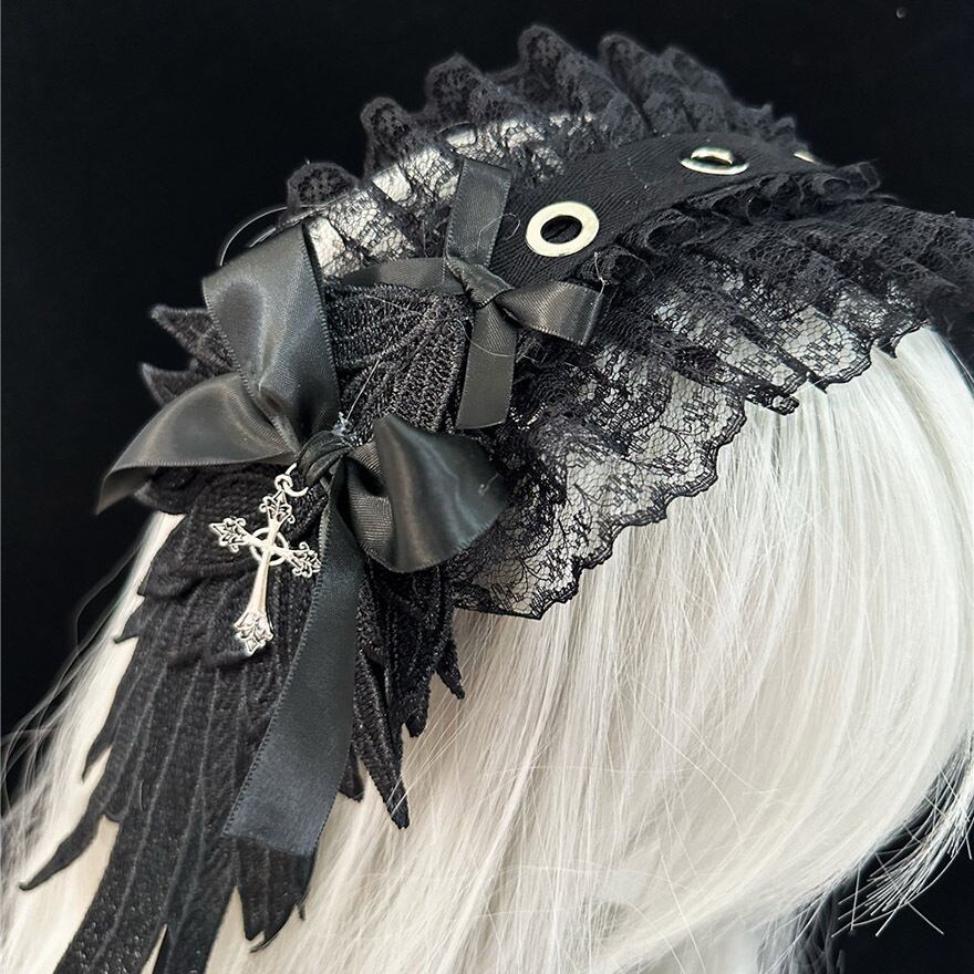 サブカル 服 地雷系 通販 系 ファッションゴスロリ ヘッドドレス カチューシャ 天使 小悪魔 羽 レース 十字架 女子 ゴシック 闇かわいい