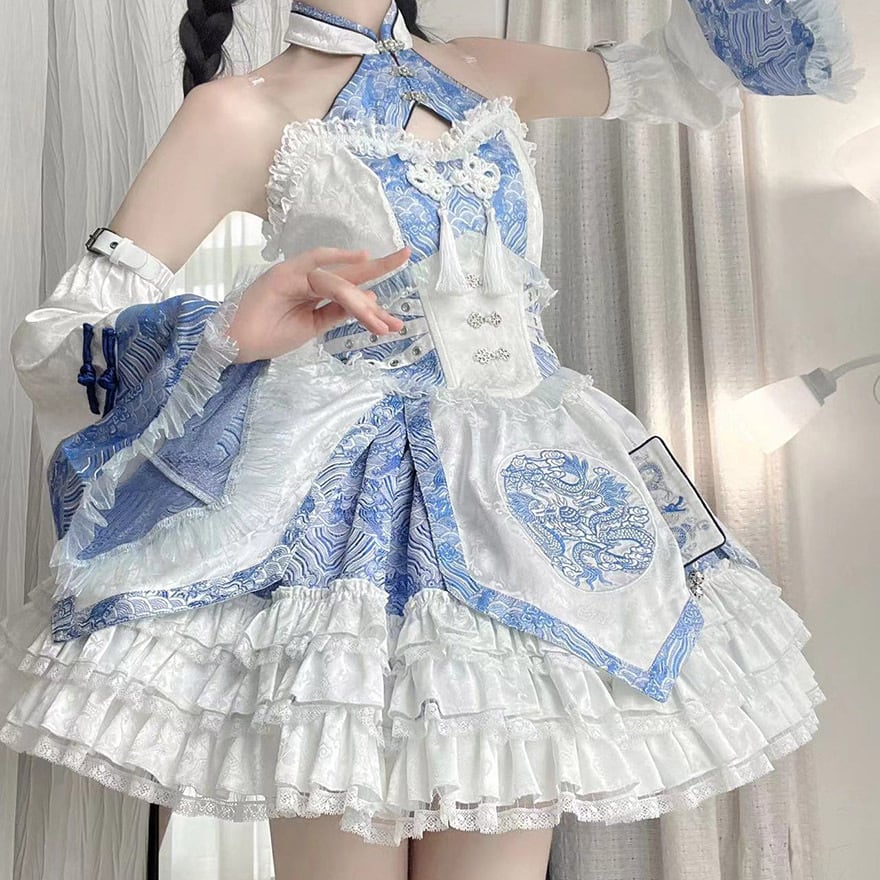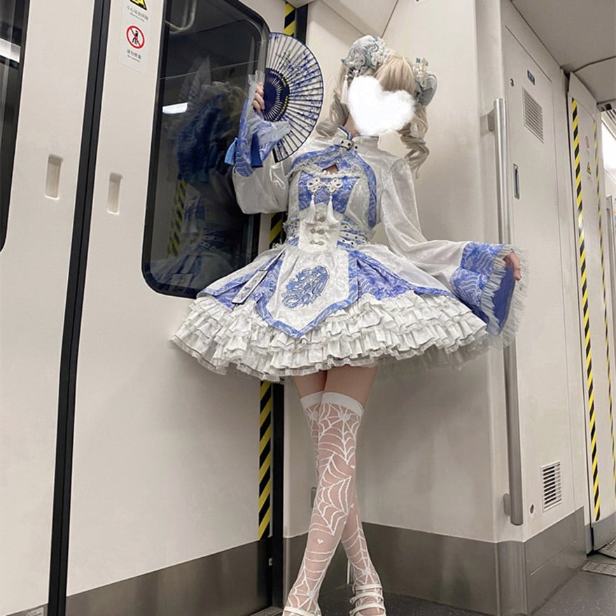 サブカル 服 地雷系 通販 チャイナ風セットアップ ワンピース ジャンスカ 羽織り ドラゴン刺繍 女子 パンクファッション イベント ステージ衣装