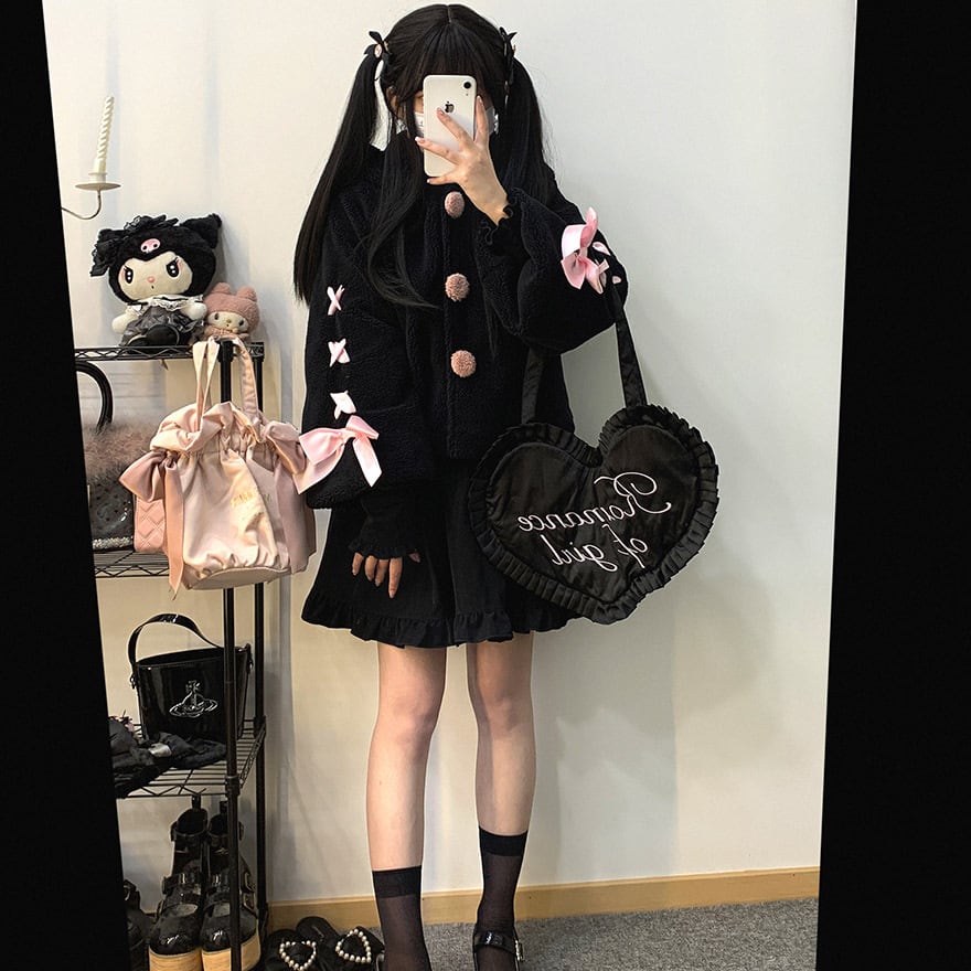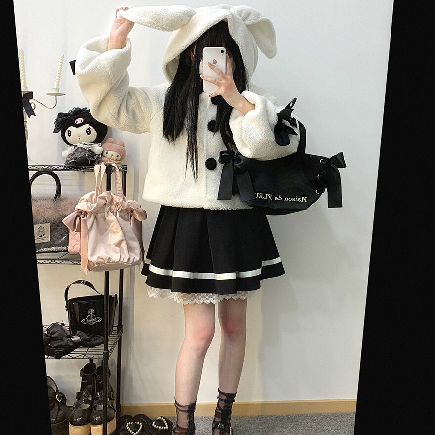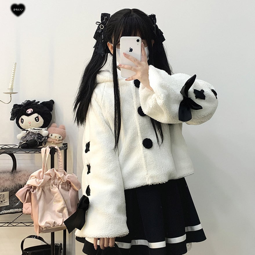 サブカル 服 地雷系 通販 アウター コート ジャケット ウサギ耳 ふわふわ リボン もこもこ ショート丈 KittyBxllet うさぎ耳 秋冬服 量産型 ガーリー
