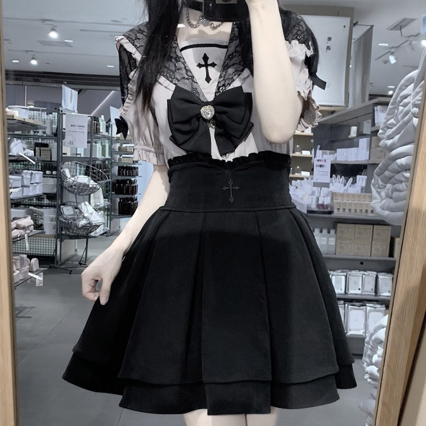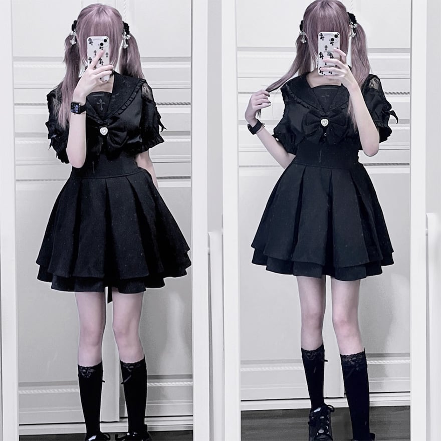 サブカル 服 地雷系 通販 長袖ブラウス シャツ オープンショルダー セーラー襟 女子 レース 袖コン 十字架 刺繍フリル秋冬服 量産型 ガーリー