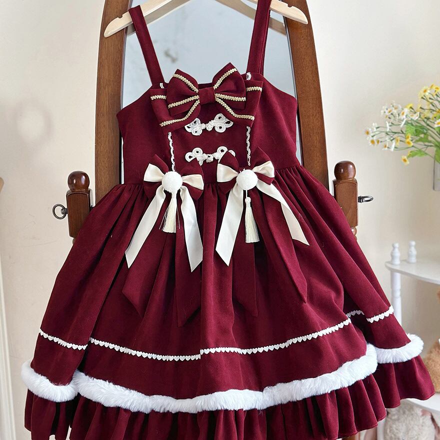 サブカル 服 地雷系 通販 チャイナ風 中華系 セットアップ ツーピース ワンピース 羽織り 長袖 ファー ふわふわ リボン クリスマス イベント衣装 秋冬服