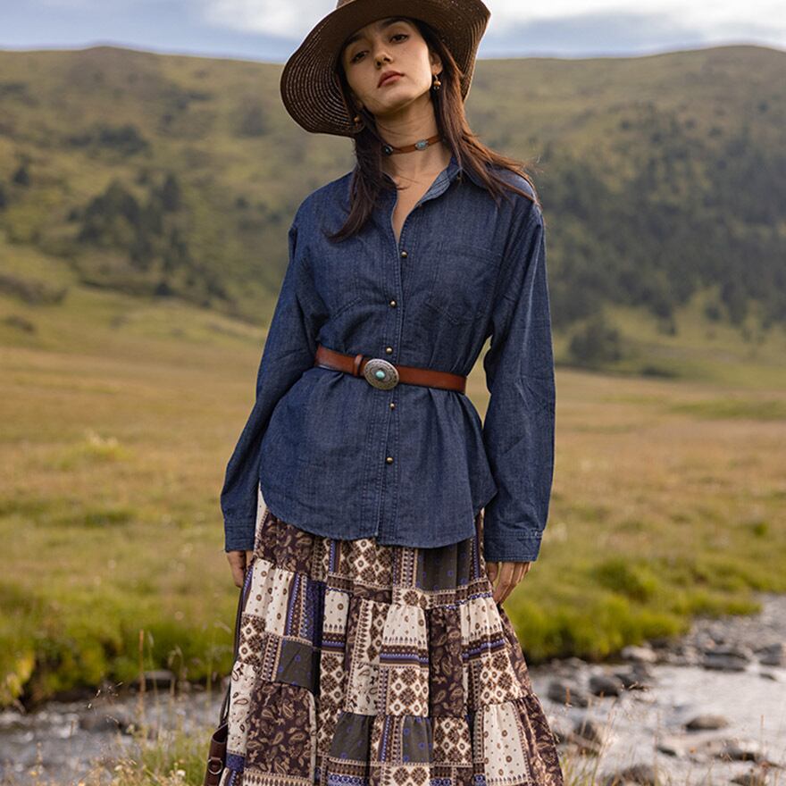サブカル 服 地雷系 通販 民族調 ロングスカート パッチワーク風 ウエスタン Aライン ハイウエスト ミドル丈 エスニック 大人増し 秋冬服 カジュアル