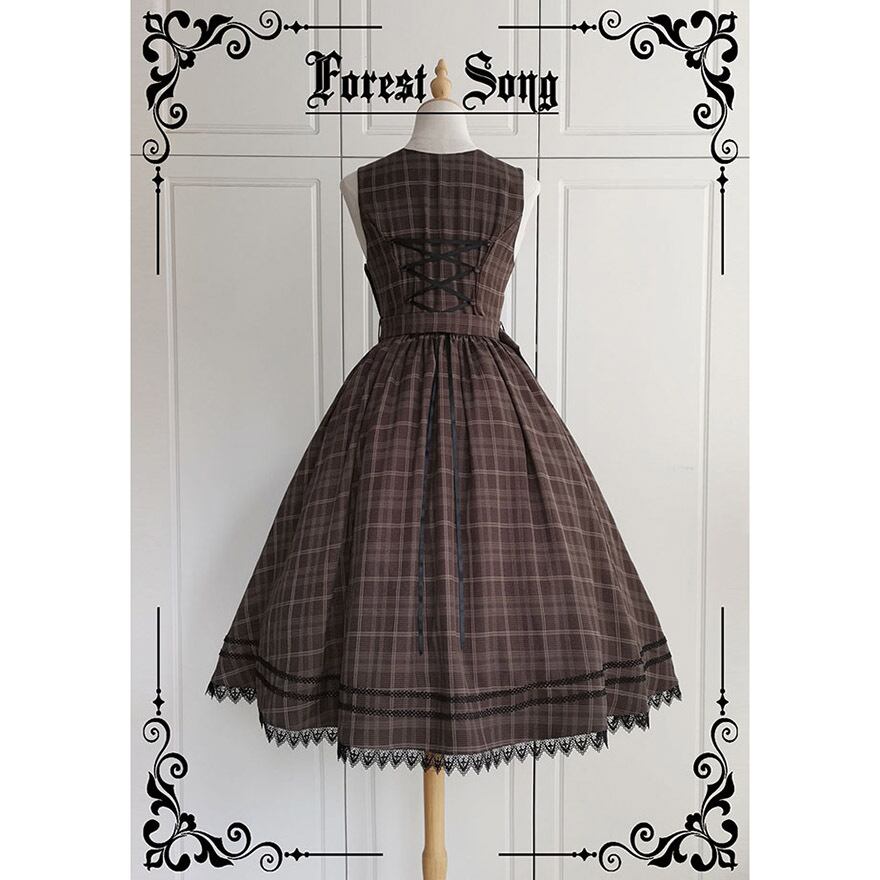 サブカル 服 地雷系 通販 クラロリ 森ガール ワンピース ジャンスカ ジャンパースカート Vネック 上品 チェック柄 バックレースアップ 英国風 秋冬服 量産型 ガーリー