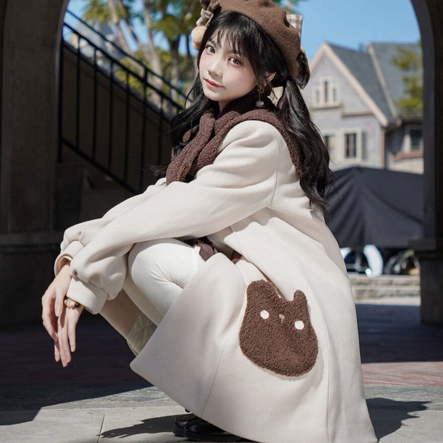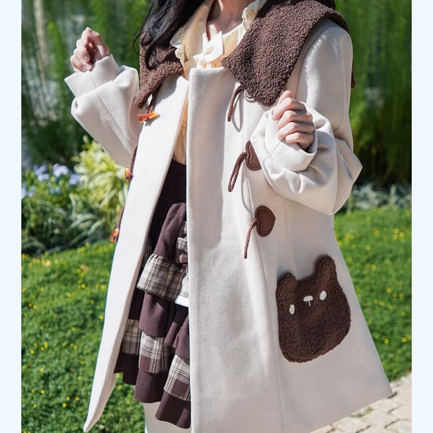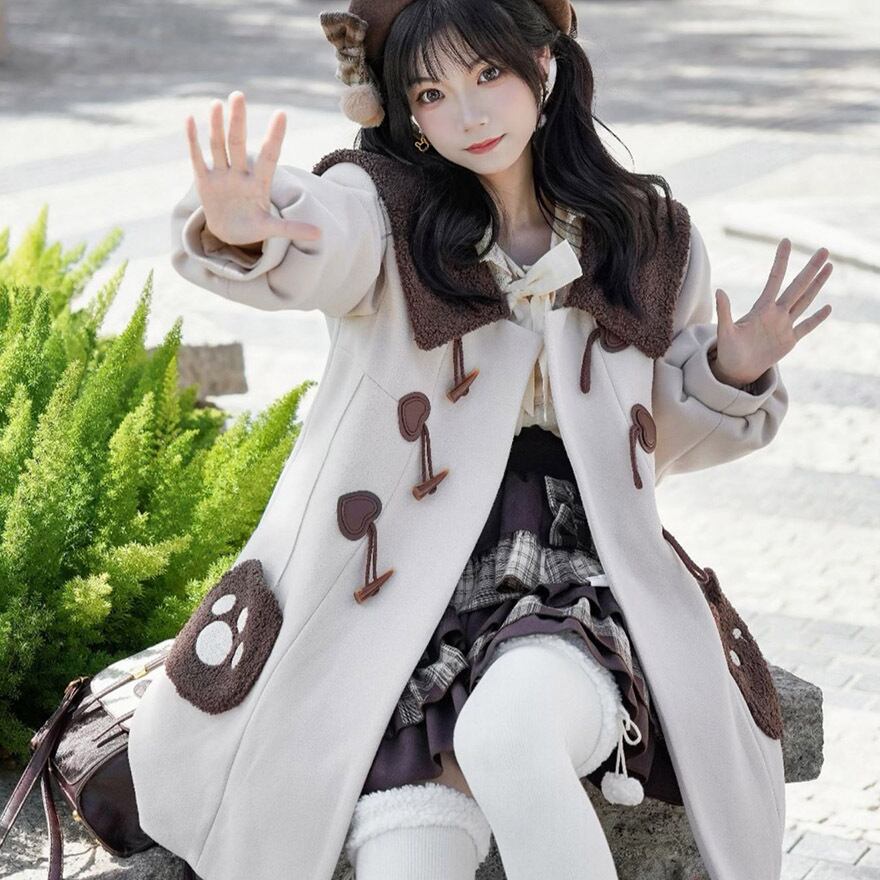 サブカル 服 地雷系 通販 コート ジャケット ロング丈 ダッフル 羽織り アウター ポケット 肉球 秋冬服 量産型 ガーリー
