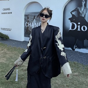 サテンに鶴の刺繍が病み可愛いチャイナ風ジャケットです。