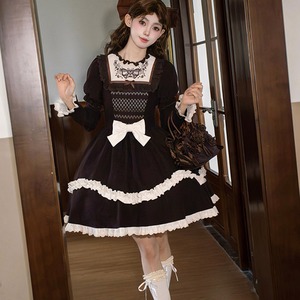 サブカル 服 地雷系 通販 PUJIオリジナル クラロリ エプロン フリル レース リボン 薔薇 刺繍 メイド服 量産型