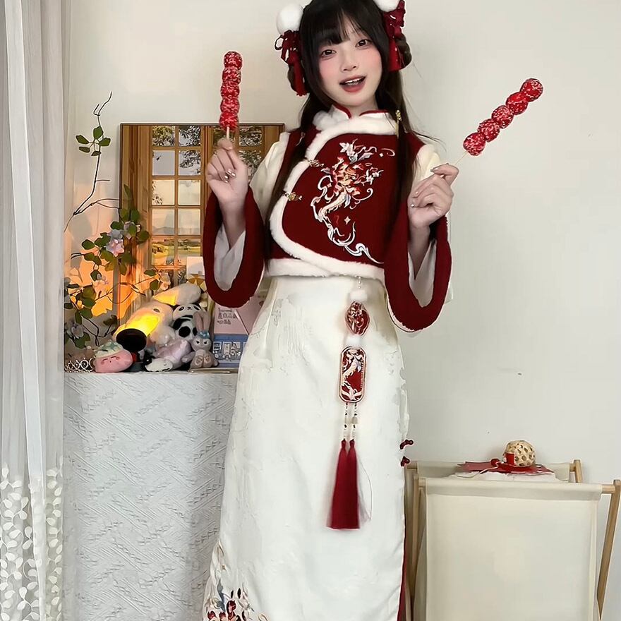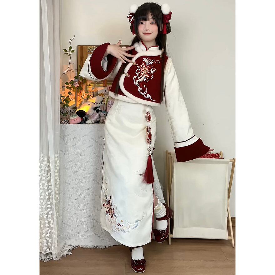 サブカル 服 地雷系 通販 中華ロリータ セットアップ ツーピース ベスト チャイナドレス スリット タッセル