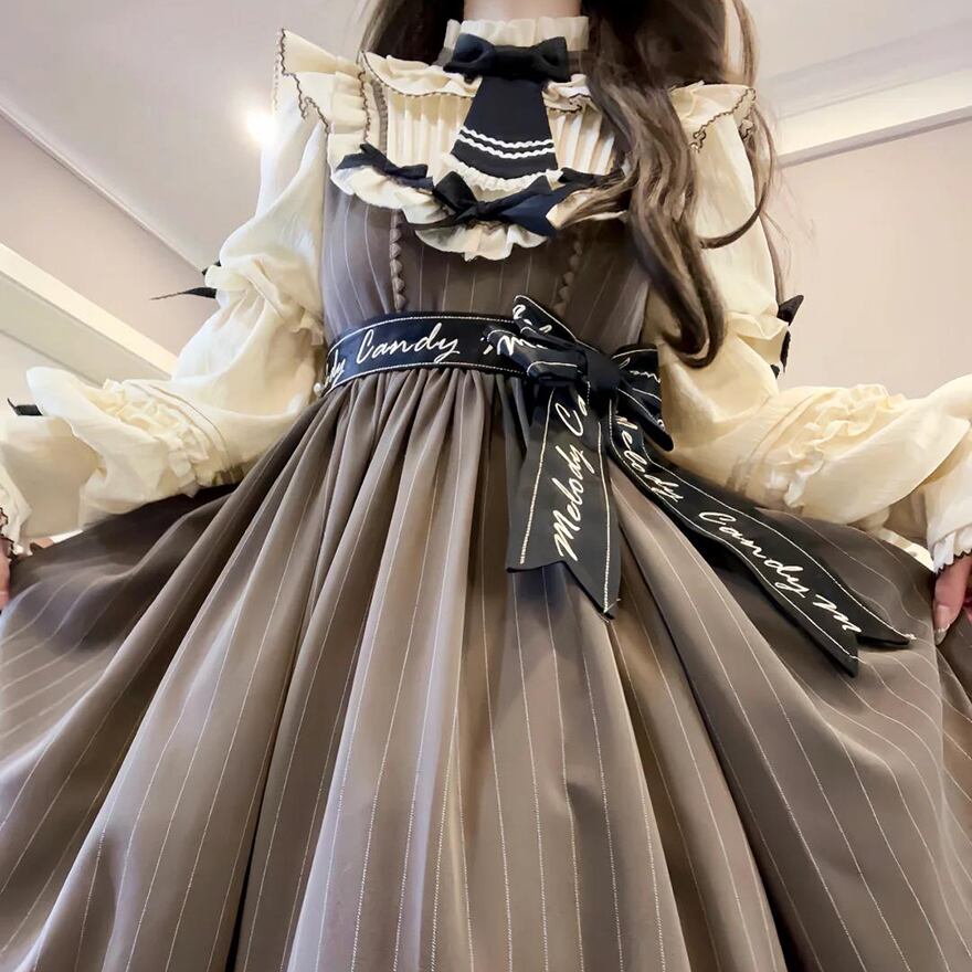 サブカル 服 地雷系 通販 クラロリ ワンピース ブラウス風 長袖 重ね着風 リボン アンティーク ふわふわ ガーリー 甘い 量産型 かわいい lolita