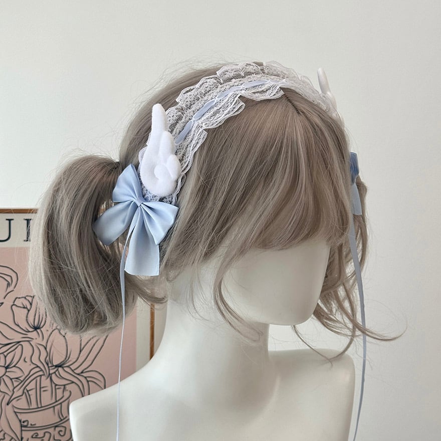 サブカル 服 地雷系 通販 天使界隈 天使の羽 水色界隈 水色ロリータ ヘッドドレス ヘアドレス カチューシャ ヘアアクセサリー リボン レース