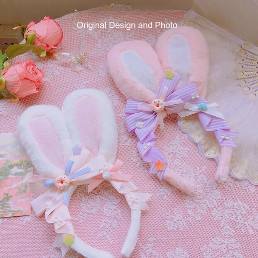 サブカル 服 地雷系 通販 天使界隈 水色ロリータ カチューシャ リボン ゆめかわ うさぎ耳 もふもふ コスプレ パーティ 小物アクセサリー イベント ガーリー lolita
