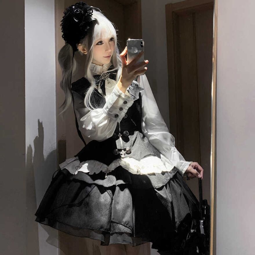 エレガントで上品さが魅力のゴスロリ3点セットアップです。