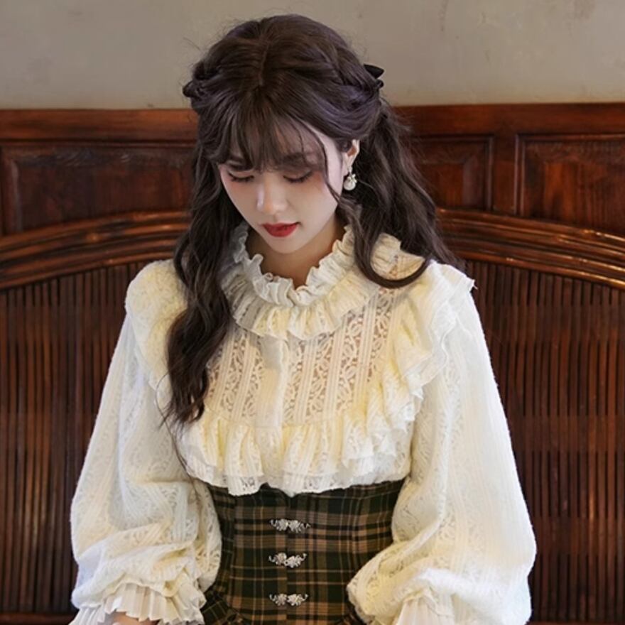 サブカル 服 地雷系 通販 クラロリ ブラウス レース ギャザー お嬢様コーデ 上品 普段使い かわいい