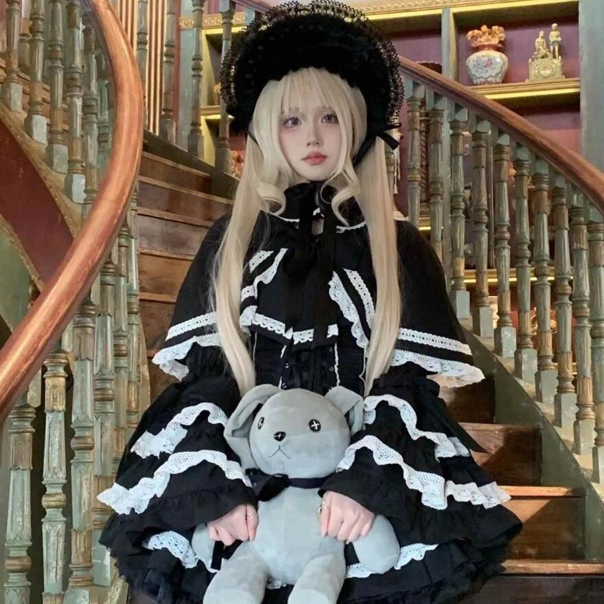 たっぷりフリルとレースが魅力的なダークゴシック3点セットアップです。