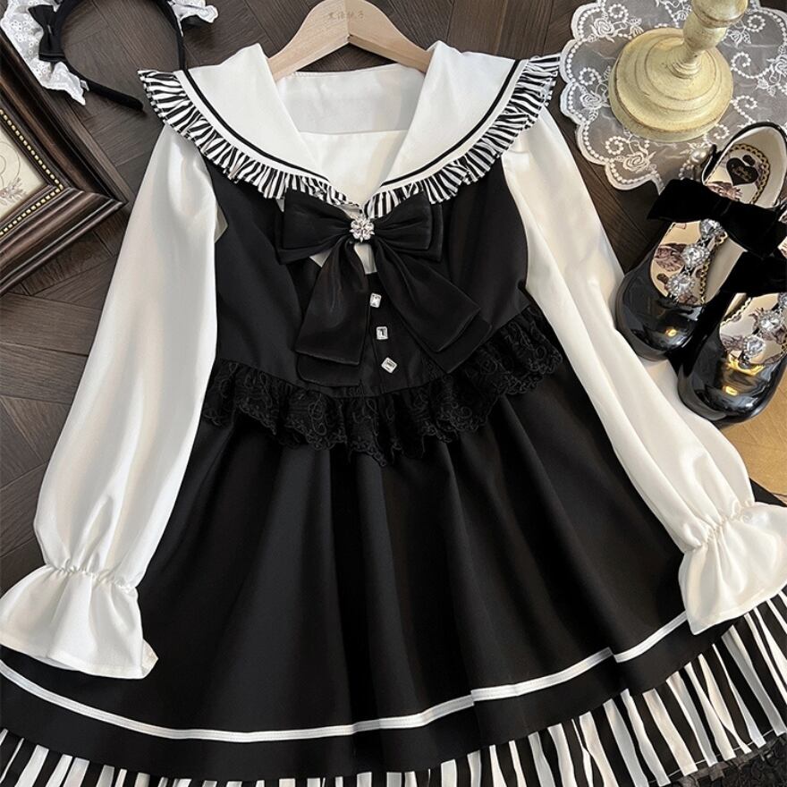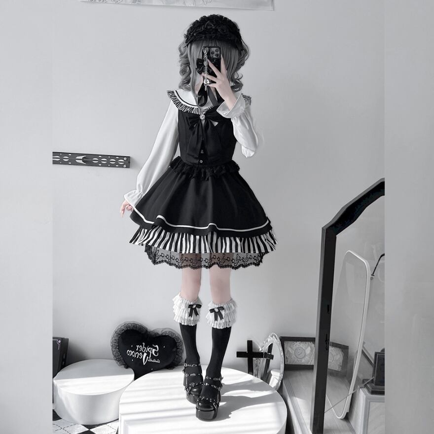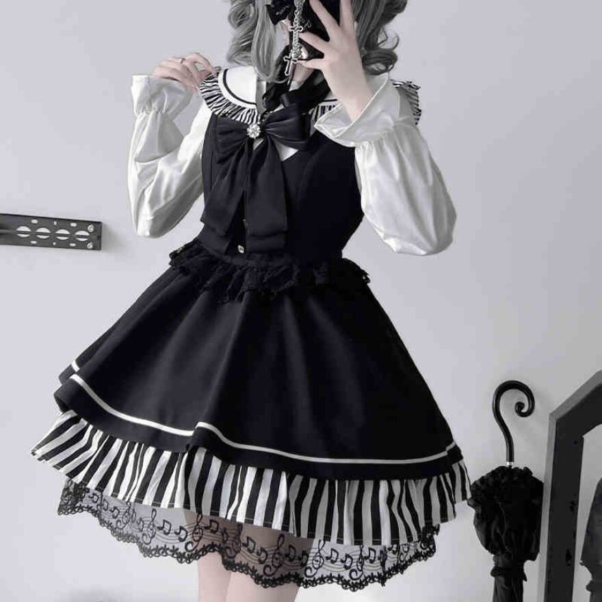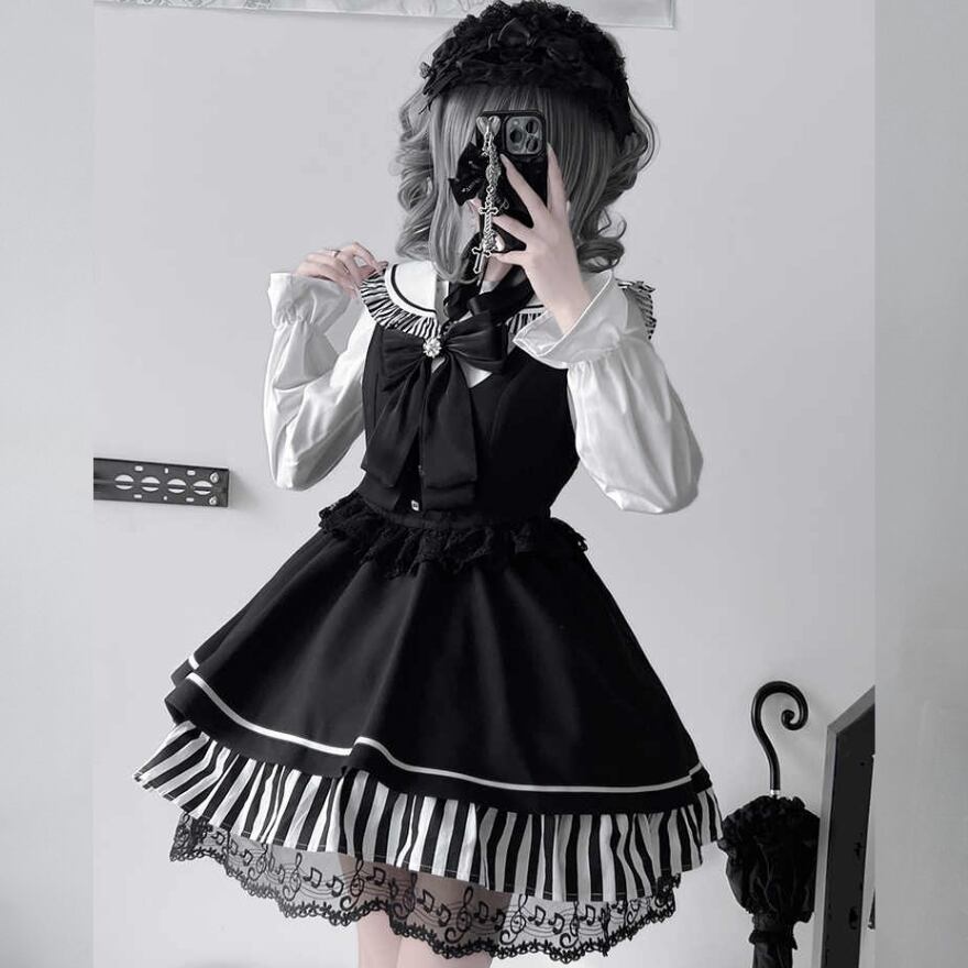 ヘルシーなミニ丈に音符に裾レースがおしゃれ増しな地雷系ゴスロリセットアップです。